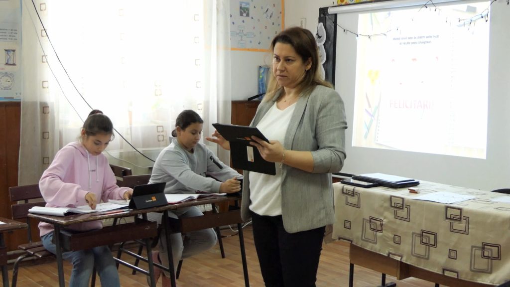 Ana Maria Stamate, profesor de matematică: Le-am sugerat să-și instaleze aplicațiile pe care le avem pe tablete și pe telefoane, acasă. Și chiar am avut succes. De exemplu, cei de la clasa a VIII-a, înainte să dăm teza digitală, mi-au zis că au instalat Quizizz și că au lucrat teste din ce au găsit acolo. Și erau foarte încântați. Și atunci asta e un mare câștig: să încercăm să-i ghidăm spre ce ar trebui să lucreze acasă, pe calculator.