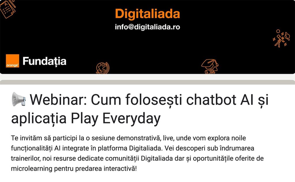 Digitaliada / Evenimente / Webinar: Cum folosești chatbot AI și aplicația Play Everyday