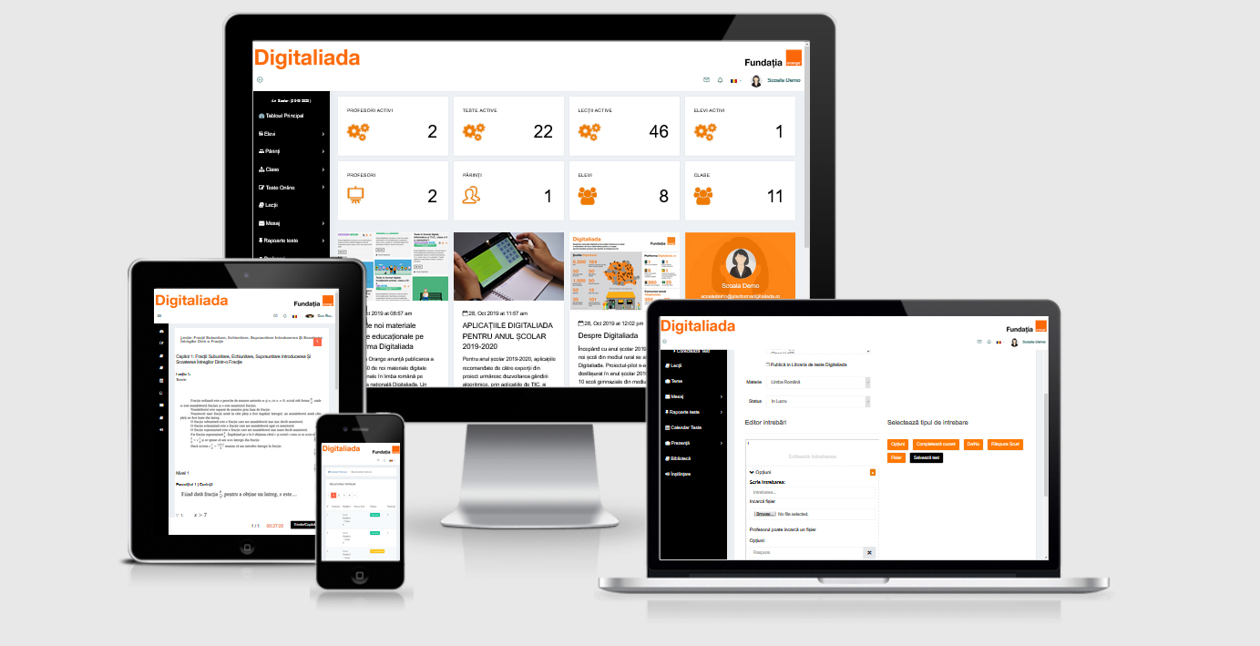 FOTO: Secțiunea de învățare și testare online, cont de școală București, 14 noiembrie 2019. Fundația Orange anunță lansarea secțiunii de învățare și testare online Digitaliada ce pune gratuit la dispoziția...